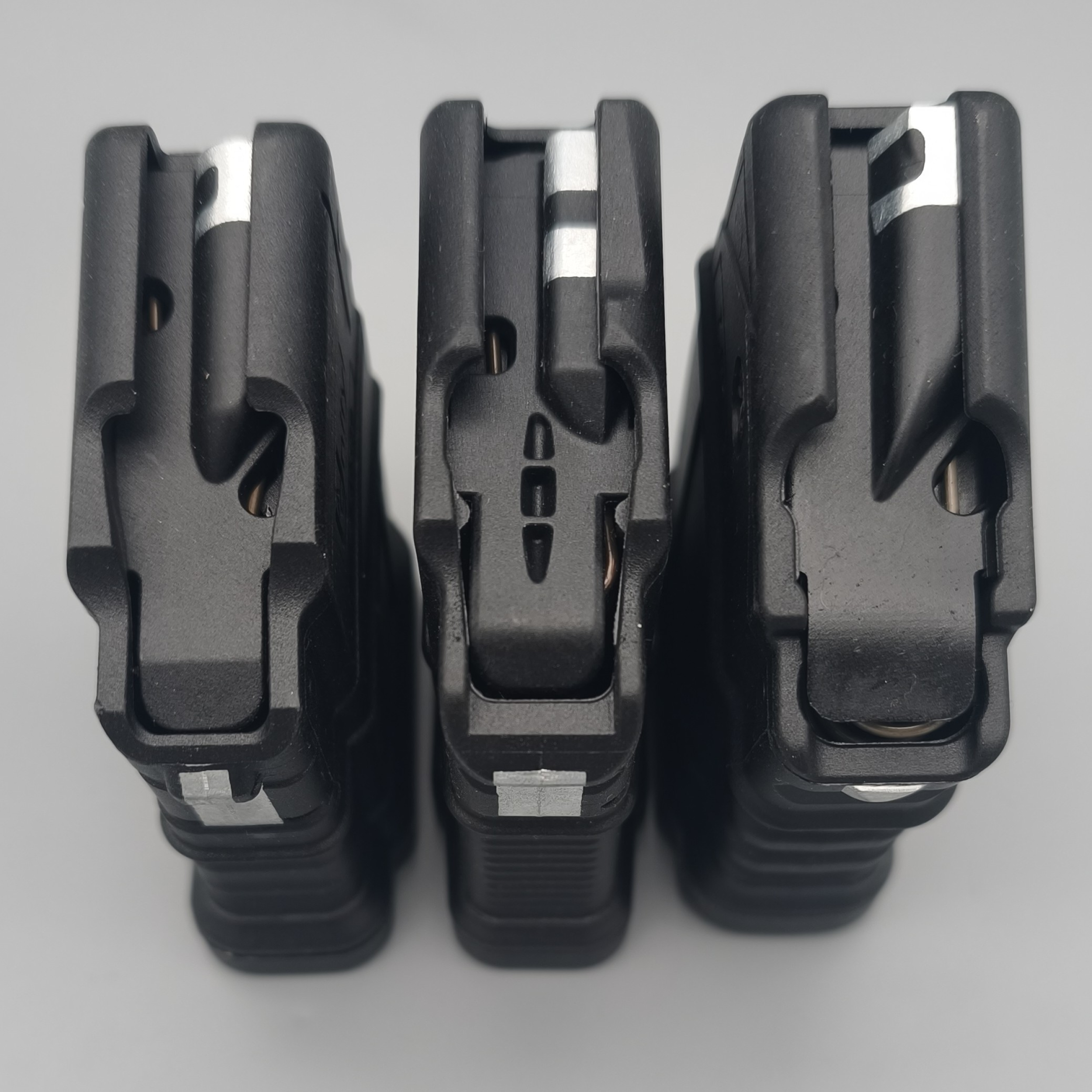 Zusätzlich ist dieses Magazin mit vorderen und hinteren Verriegelungslaschen aus Metall versehent, die zusätzliche Stabilität und Haltbarkeit bieten. Diese Verriegelungslaschen gewährleisten einen sicheren Sitz und eine zuverlässige Zuführung – selbst unter anspruchsvollsten Einsatzbedingungen. Die Magazine verfügen über einen sogenannten "Jugo Bolt hold open". Damit bleibt der Verschluss der Waffe nach dem letzten Schuss offen. Was für eine erhöhte Sicherheit sorgt und es ermöglicht eine Ladezustandskontrolle ohne Verrenkungen durchzuführen.